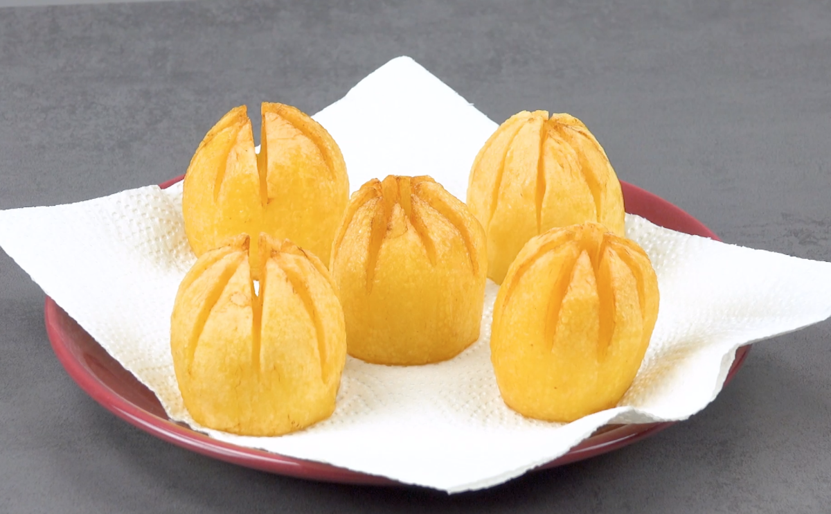 Dass die Kartoffel auch Hauptdarsteller in innovativen Gerichten sein kann, beweist folgendes Rezept. Die frittierten Kartoffel-Blüten sind sowohl vom Geschmack als auch vom Aussehen her einmalig.