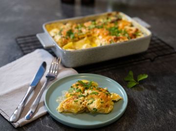 Fischstäbchen-Auflauf mit Gemüse und Käse
