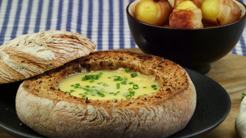 Kreatives Käsefondue im Brot mit Bacon-Kartoffeln