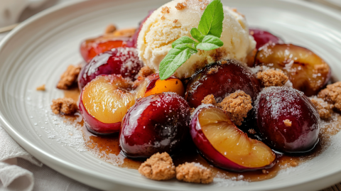 Unwiderstehlich lecker: karamellisierte Pflaumen mit Vanilleeis