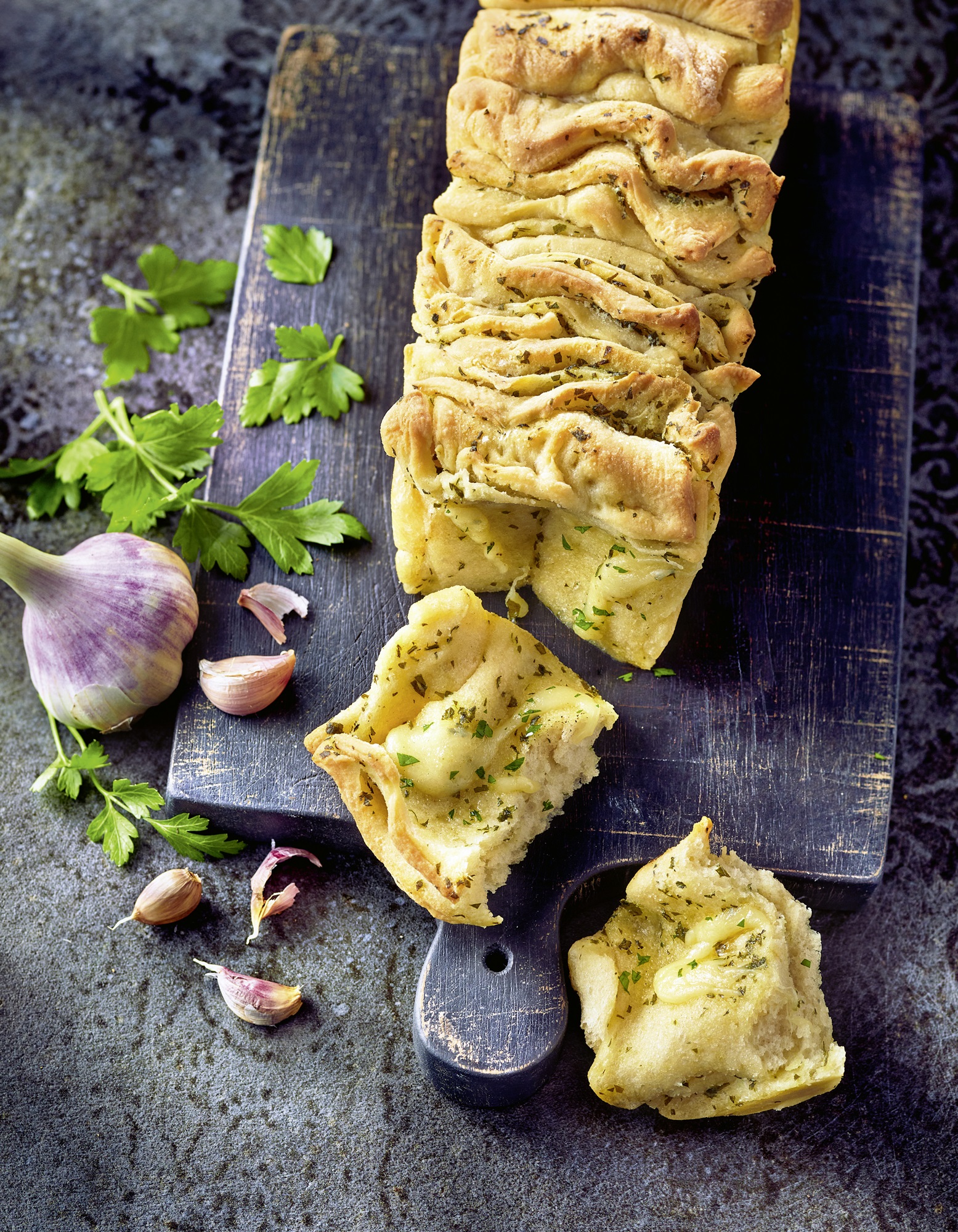 - Herrlich rustikal: leckeres Zupfbrot mit Käse und Knoblauchbutter