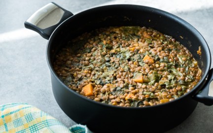 Rezept für Linseneintopf mit Süßkartoffeln und Spinat