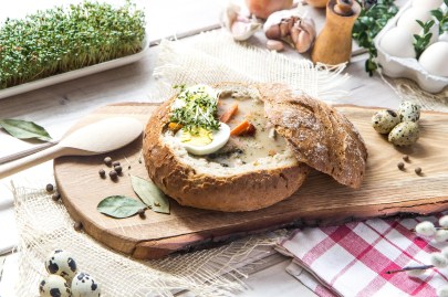 Möchtest du zu Ostern in diesem Jahr die polnische Suppe Zurek servieren, solltest du etwas mehr Zeit dafür einplanen und am besten schon drei Tage vorher mit den Vorbereitungen beginnen. Vor dem Kochen der eigentlichen Suppe wird eine Mischung aus Roggenschrot und warmem Wasser angesetzt, die gären muss und dem Gericht ihr säuerliches Aroma verleiht. Typisch für Zurek sind auch die hart gekochten Eier, die zum Servieren aufgeschnitten mit in die Suppe gegeben werden.